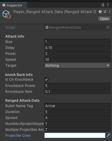 만든 스크립트를 ProjectileManager에 먹여주고 다음과 같이 설정을 해준다.