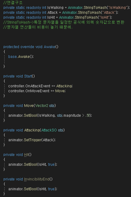 스크립트 생성 후 4가지의 애니메이션들을 만들어 주었다.