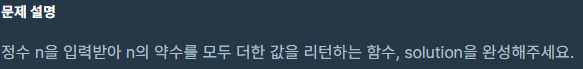 >>약수들을 어떻게 구할까 생각해보니 나누었을 때 0으로 떨어지면 그게 나의 약수들아닌가!? 해서 생각보다 간단하게 코드를 짰다!