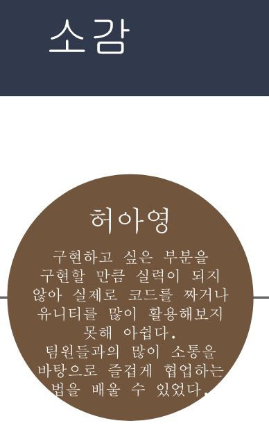 시간이 모자라서 개인적으로 조금 아쉬웠던 부분은