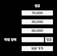 일단 입금버튼과 뒤로가기 버튼을 먼저 만들어 화면전환을 했다.