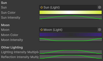 RenderSettings.ambientIntensity = lightingIntensityMultiplier.Evaluate(time);