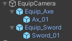 원래 메인카메라에는 culling Mask 부분에서 equip만 빼준다.